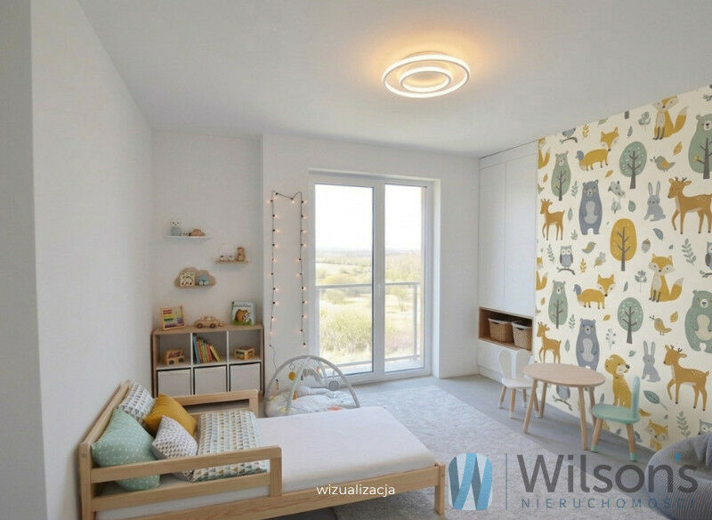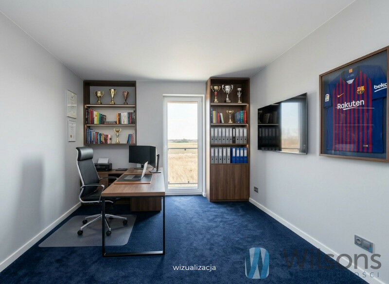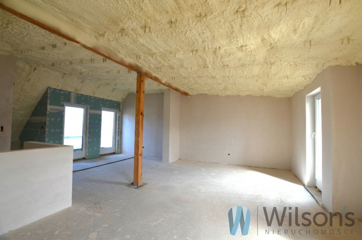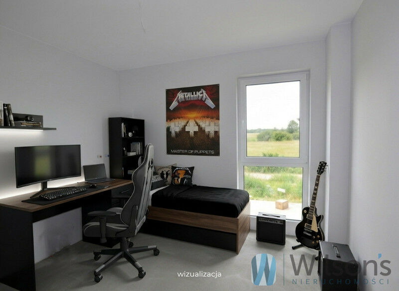 To pełna powierzchnia użytkowa (brak skosów z jednej strony, duże okna) do samodzielnej aranżacji Klienta (np. pracownia, bawialnia, fitness lub niezależna przestrzeń - pokój dzienny, sypialnia, łazienka i garderoba, łącznie 48 m2) oraz balkon.