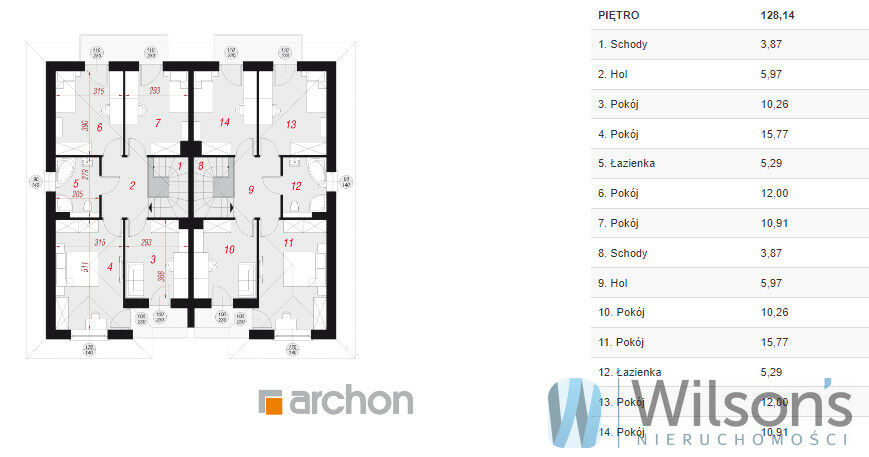 Ma powierzchnię całkowitą 168 m2, użytkową 126 m2.