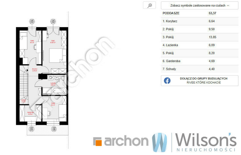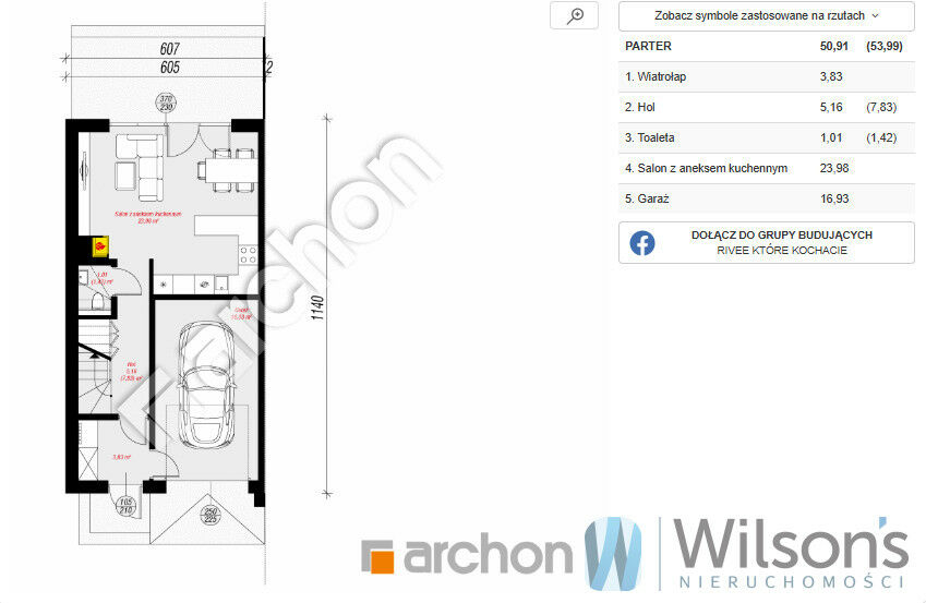 Powierzchnia całkowita domu to 143 m2, użytkowa 104 m2.