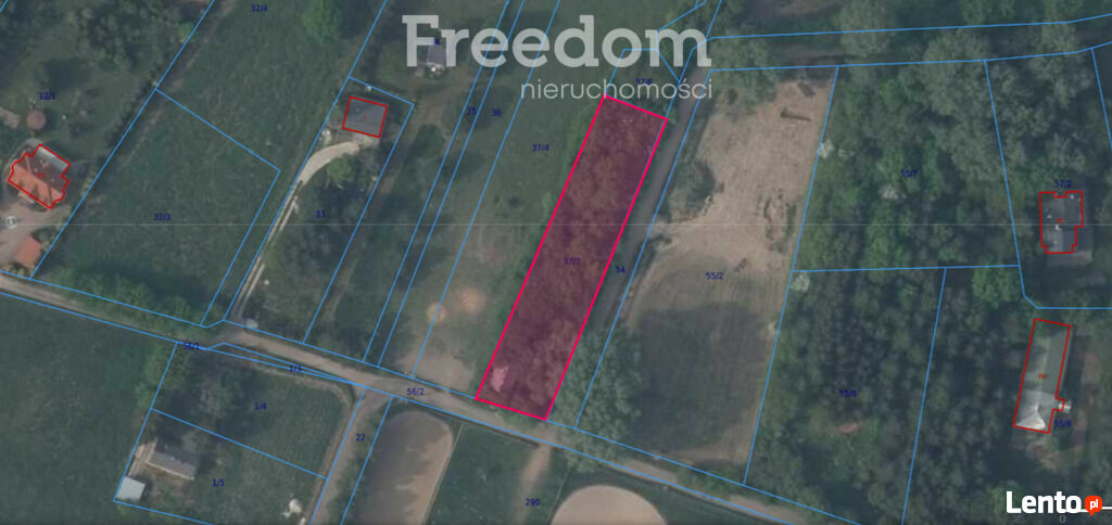 Działka położona jest w zielonej i spokojnej okolicy w otoczeniu